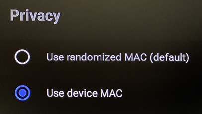 Go to Settings -> Network & Internet -> Select Network -> Privacy -> Use Device MAC